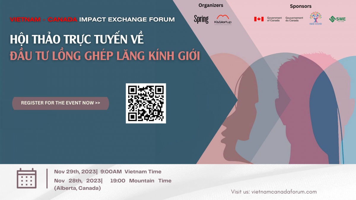 Đến với hội thảo trực tuyến về đầu tư lồng ghép lăng kính giới, bạn sẽ được lắng nghe những chia sẻ, trao đổi kiến thức với các chuyên gia giàu kinh nghiệm họ là những nhà đầu tư, startup tiêu biểu trong lĩnh vực đầu tư lồng ghép lăng kính giới đến từ Việt Nam và Canada. Bên cạnh đó bạn còn có cơ hội được hiểu hơn về hệ sinh thái đầu tư lăng kính giới của Canada và hoạt động của các tổ chức hỗ trợ, một quốc gia đi tiên phong trong đầu tư lăng kính giới và gặt hái nhiều kết quả từ hoạt động này.