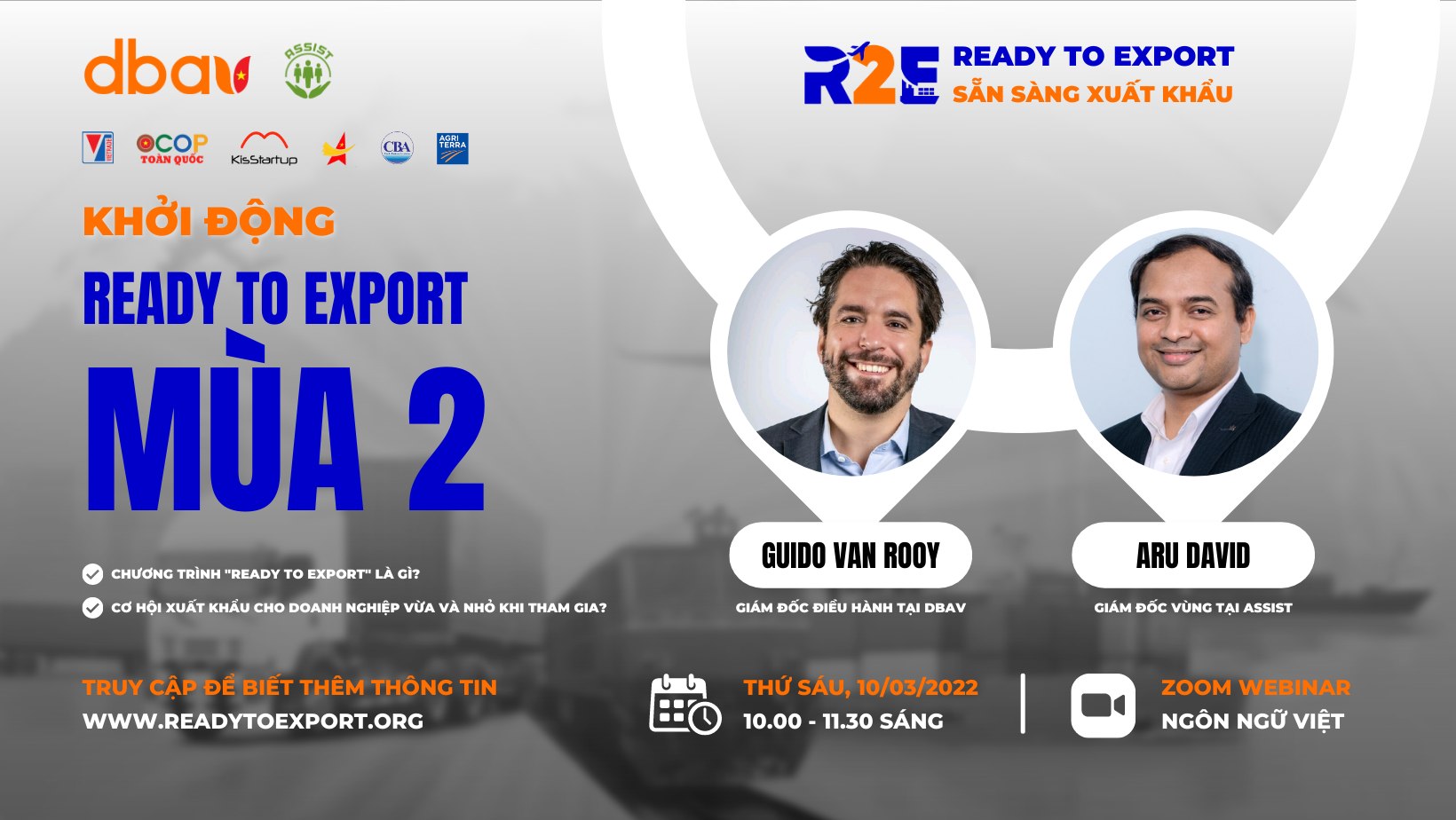 Sẵn sàng Xuất khẩu (Ready to Export) là chương trình do Hiệp hội Doanh nghiệp Hà Lan tại Việt Nam - DBAV và ASSIST phối hợp triển khai trong 03 năm.