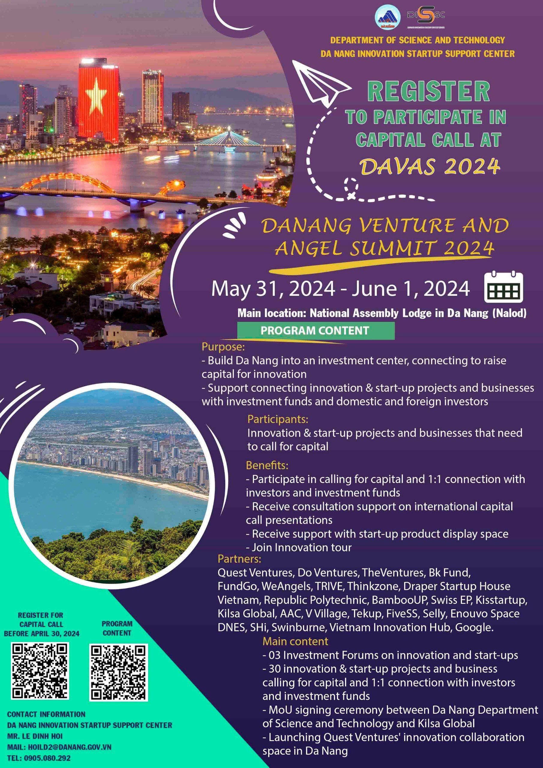DAVAS (Danang Venture and Angel Summit) là Diễn đàn đầu tư THIÊN THẦN và MẠO HIỂM được tổ chức thường niên tại thành phố ĐÀ NẴNG và bắt đầu vào năm 2024.
