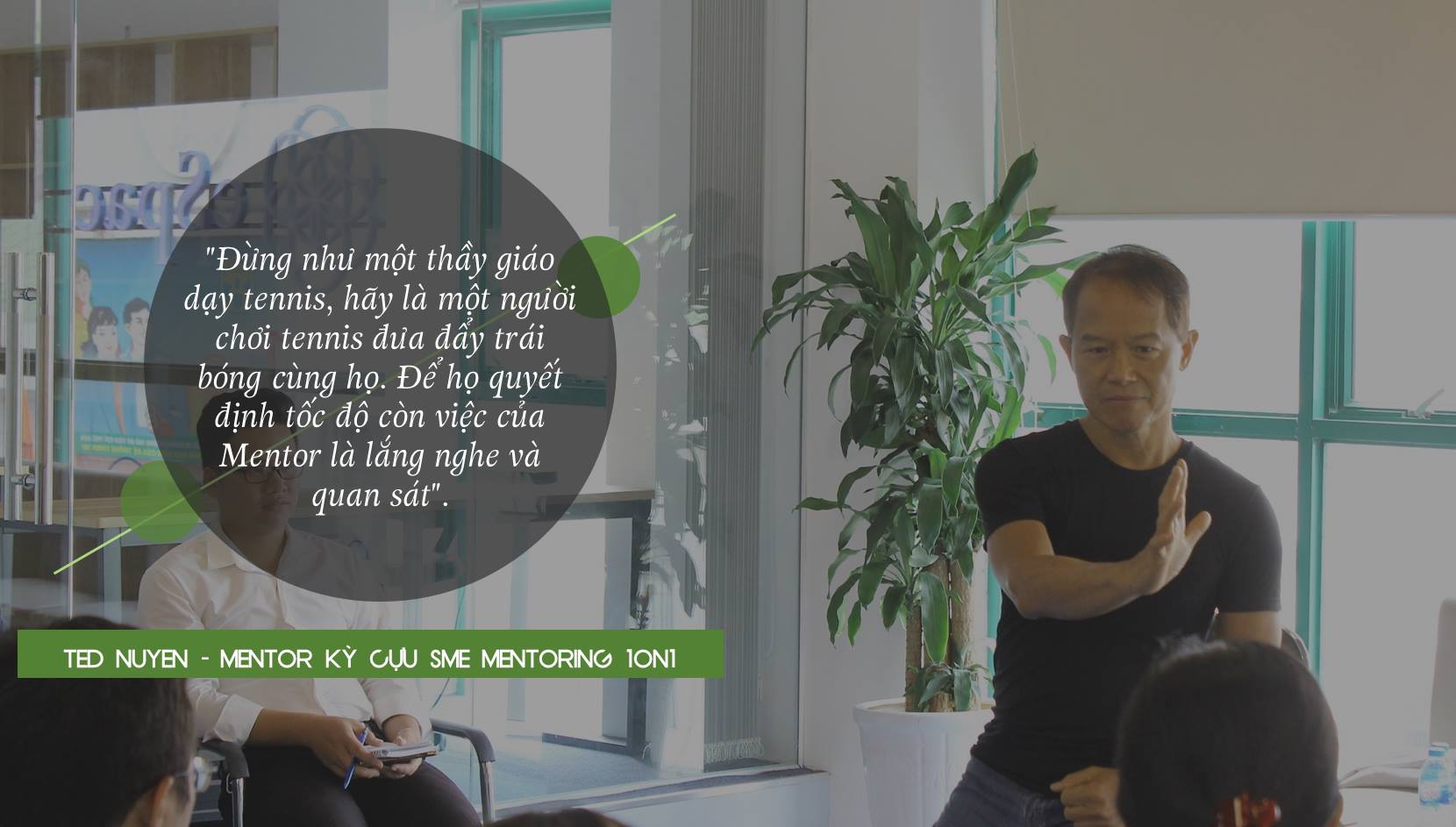 Sự kiện "Mentoring - Where do I start?" diễn ra ngày 07.07.018 tại eSpace Coworking, mở màn cho một chuỗi các sự kiện tuyển Mentor và Mentee của SME Mentoring 1on1 tại Hà Nội. Tại đây, Mentor Ted Nuyen đã chia sẻ và trả lời từ những câu hỏi đơn giản nhất nhưng vẫn đầy giá trị và ý nghĩa về Mentor và Mentee với những câu chuyện thật đến từ chính những trải nghiệm của anh.